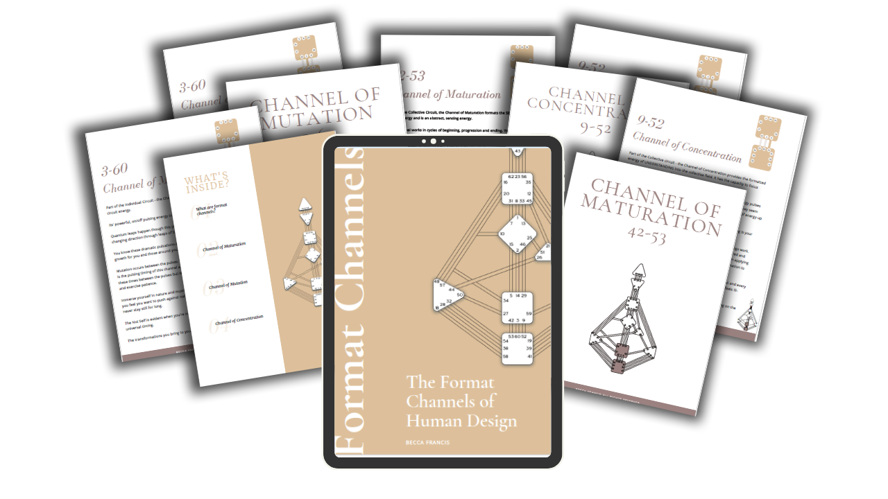 Uncover the power of format channels in Human Design. Explore these three influential channels and their impact on your chart. Harness their power for growth & empowerment with this insightful guide and learn them in depth to use in your readings & coaching.